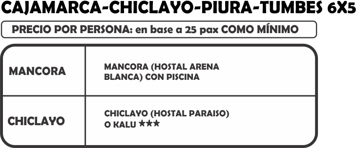 08:00 am. Llegamos a Piura e instalación en el hotel seleccionado.