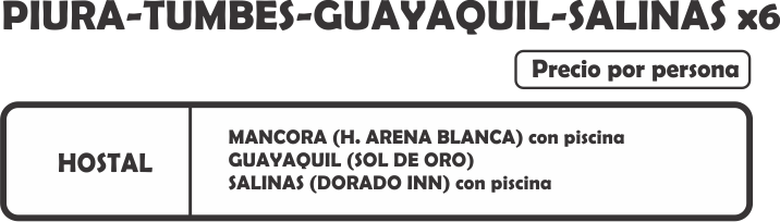 06:30 am. Arribo a Salinas e instalación en el hotel seleccionado.