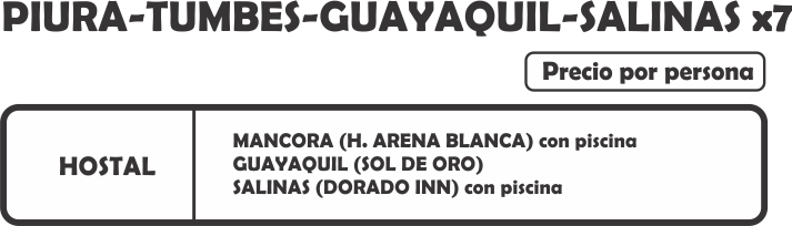 06:30 am. Arribo a Salinas e instalación en el hotel seleccionado.