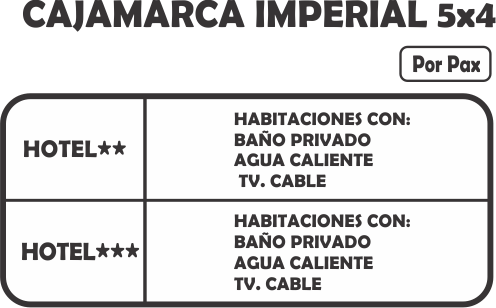 07:30 pm Cena y luego pernocte o paseo por el Centro de Cajamarca.